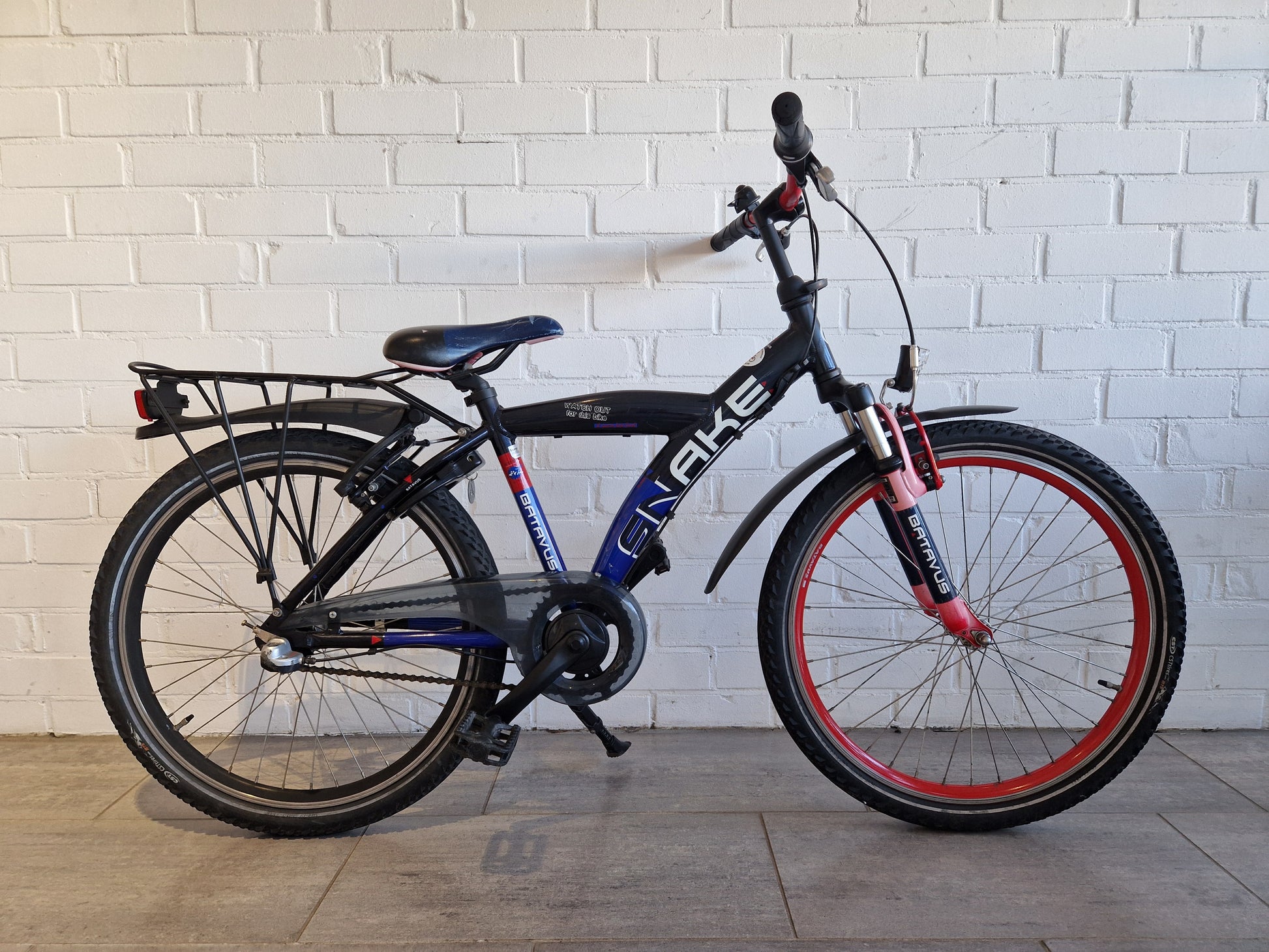 Batavus Snake jongensfiets. Al onze tweedehands fietsen hebben een complete onderhoudsbeurt gehad in onze werkplaats en worden verkocht met 1 maand garantie.