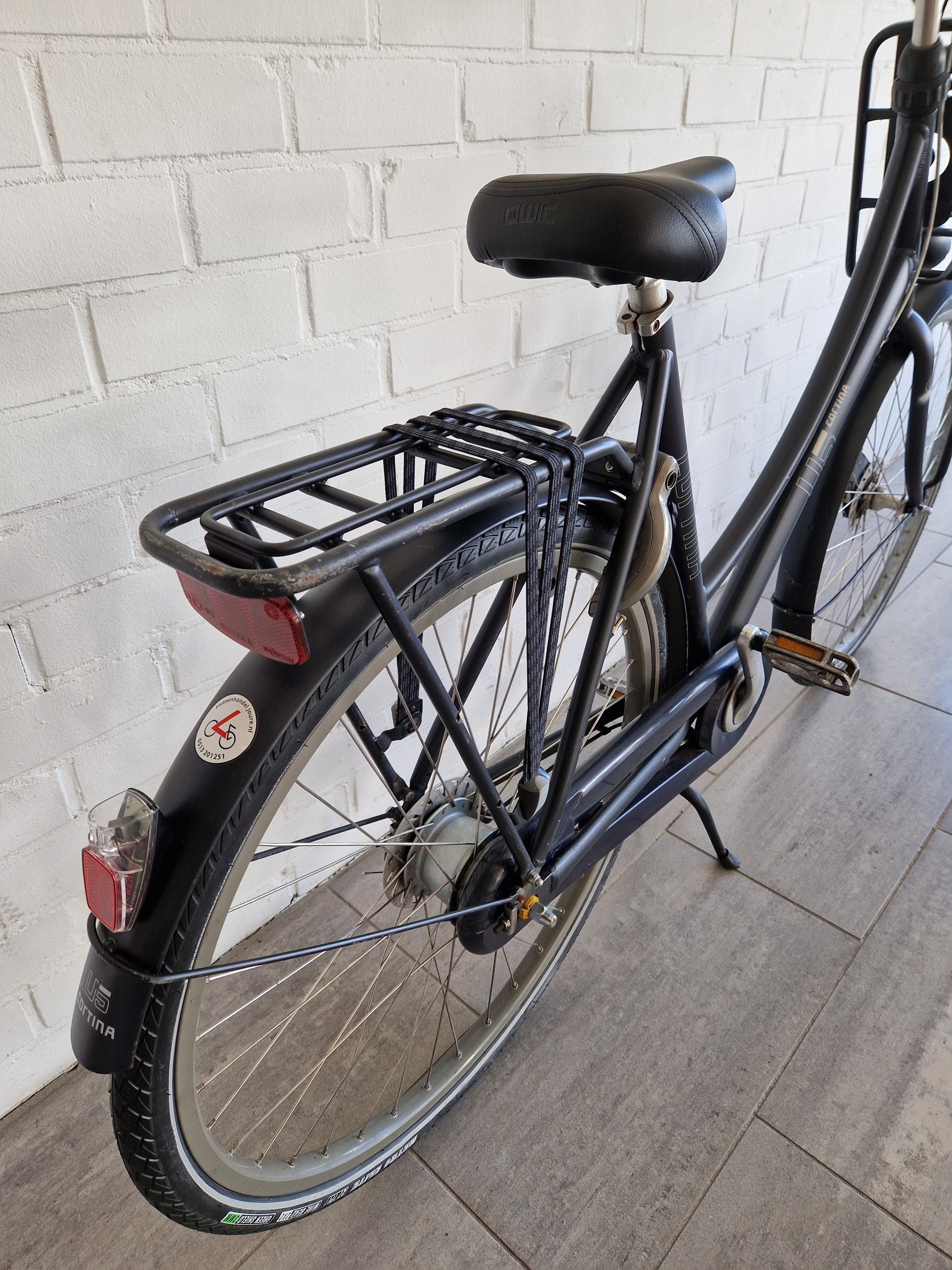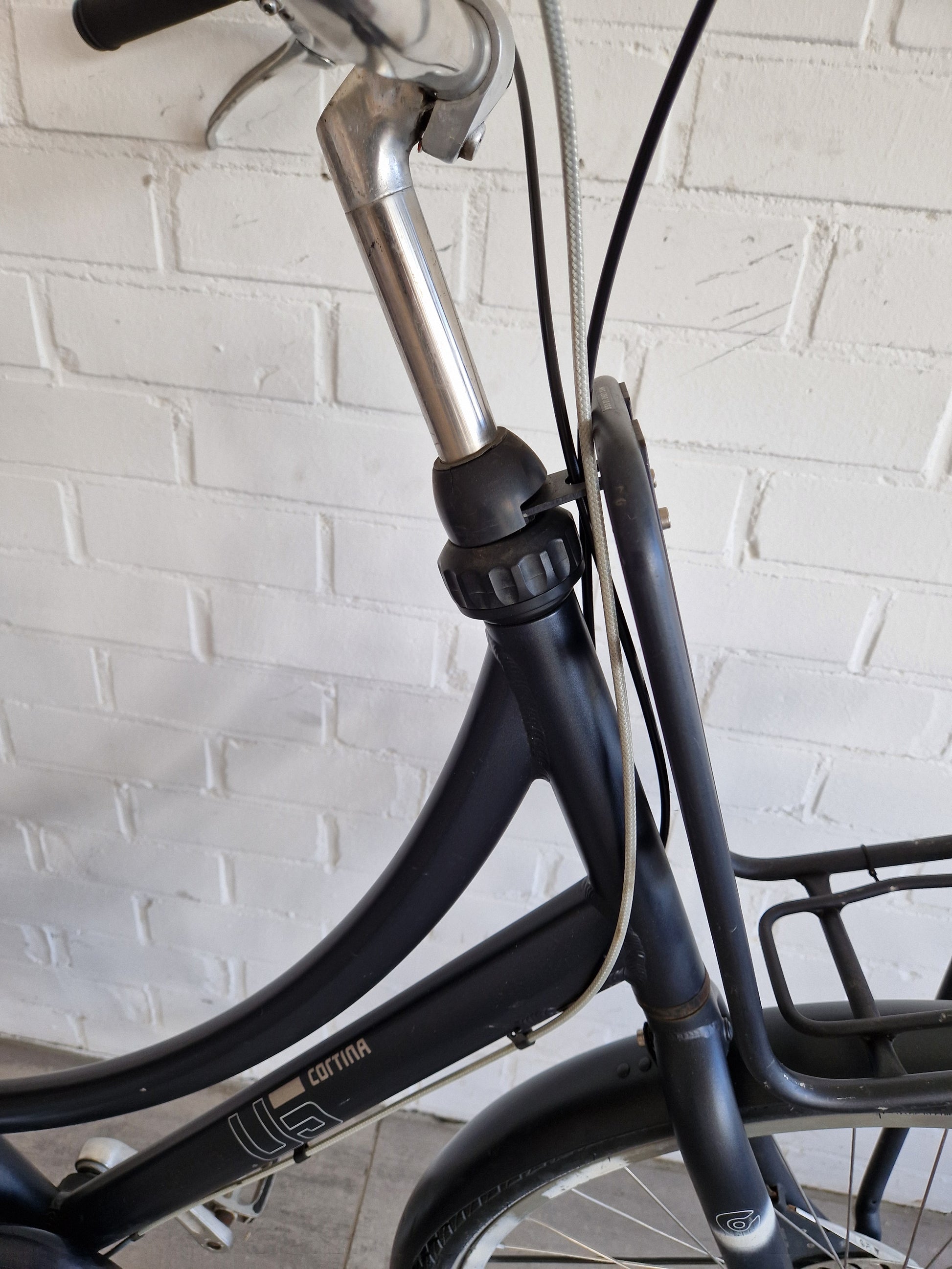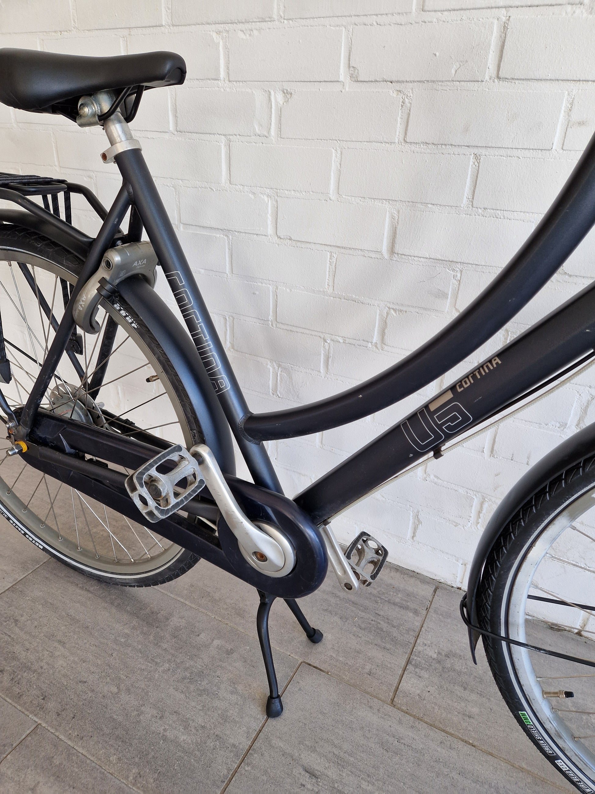 Gebruikte Cortina transport/ damesfiets. Al onze tweedehands fietsen hebben een complete onderhoudsbeurt gehad in onze werkplaats en worden verkocht met 1 maand garantie.