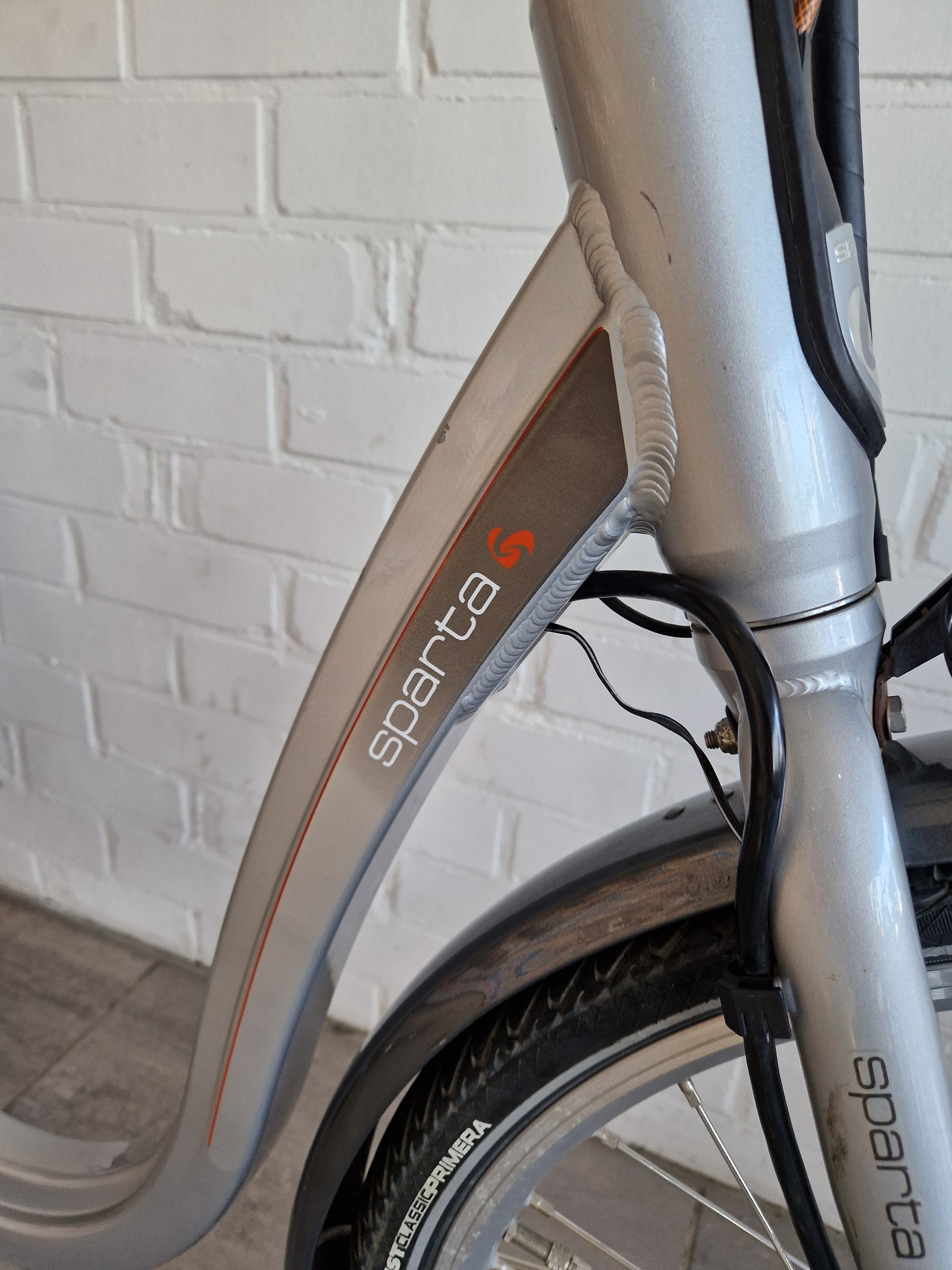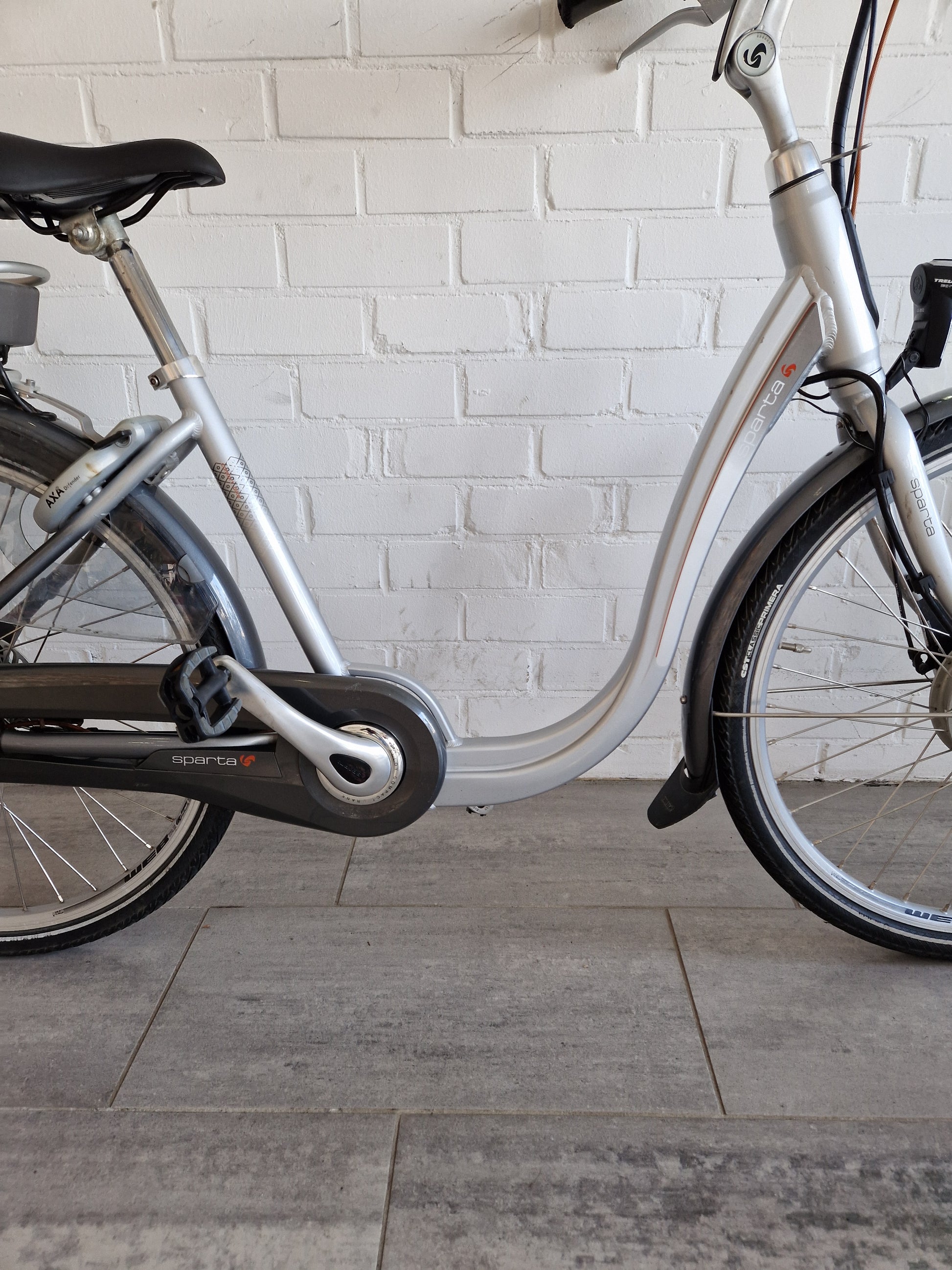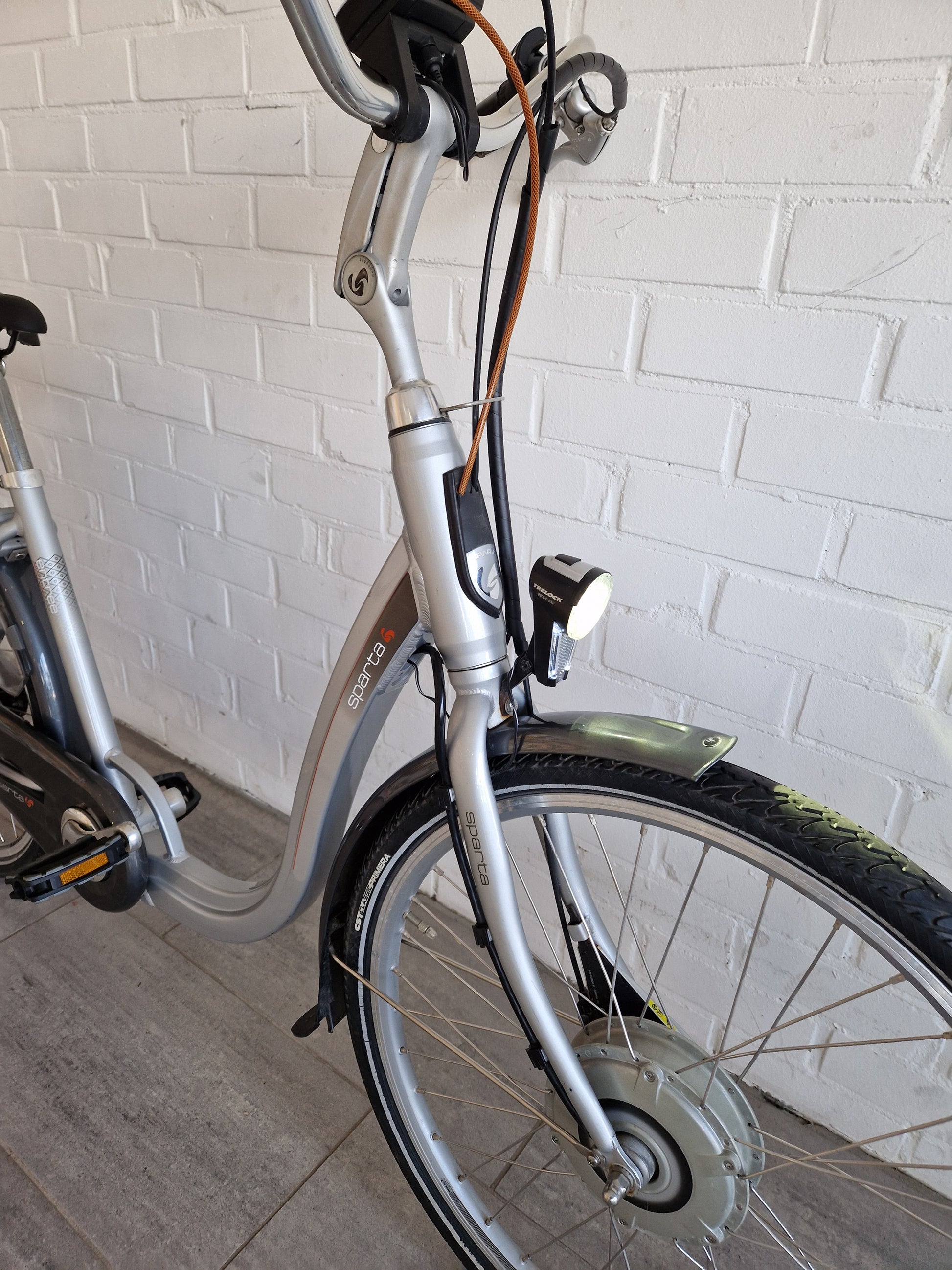 Sparta elektrische fiets met extra lage instap. Al onze tweedehands fietsen hebben een complete onderhoudsbeurt gehad in onze werkplaats.