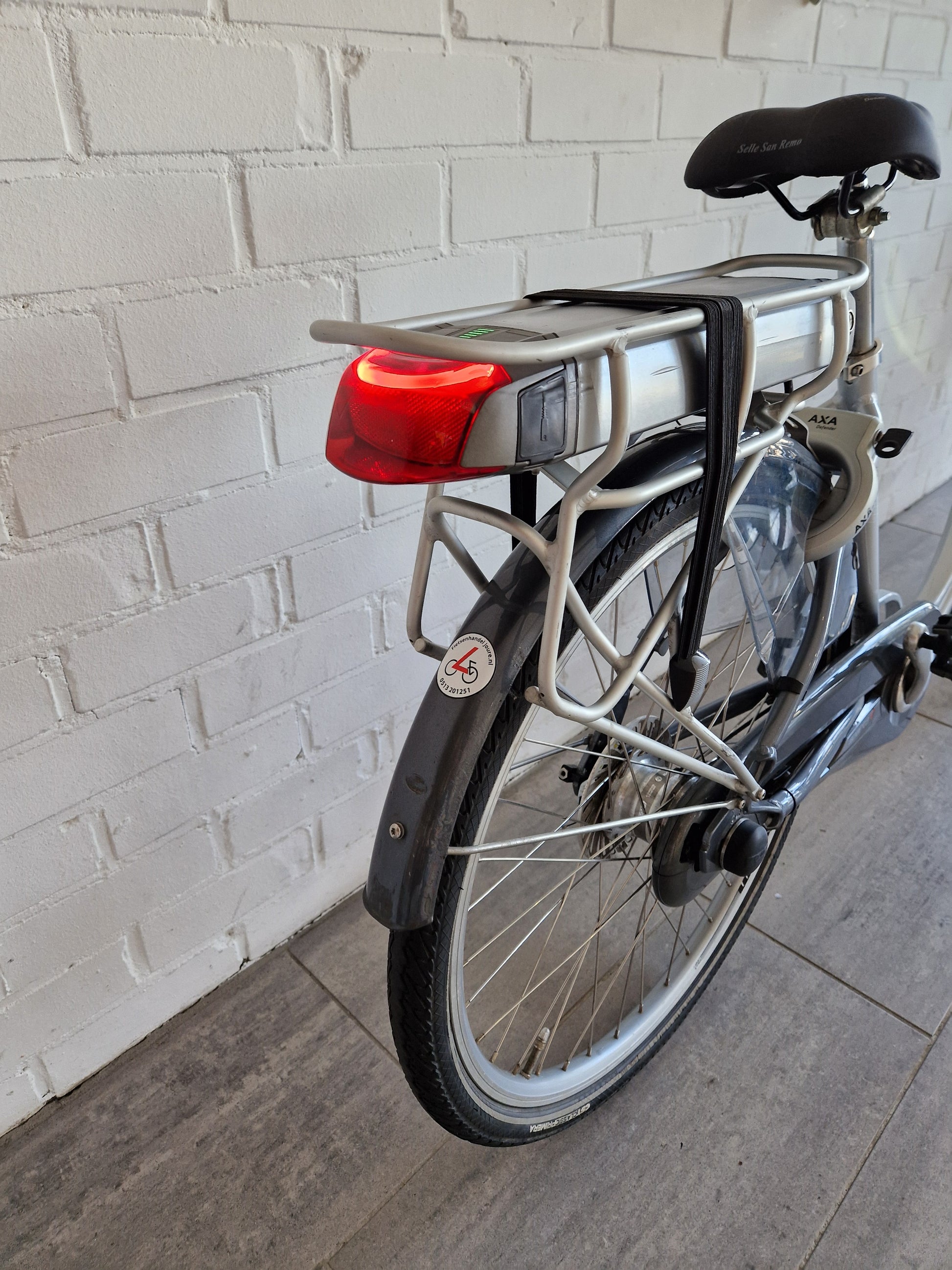 Deze e-bike is voorzien met een accurapport. Accucellen zijn nog 100%