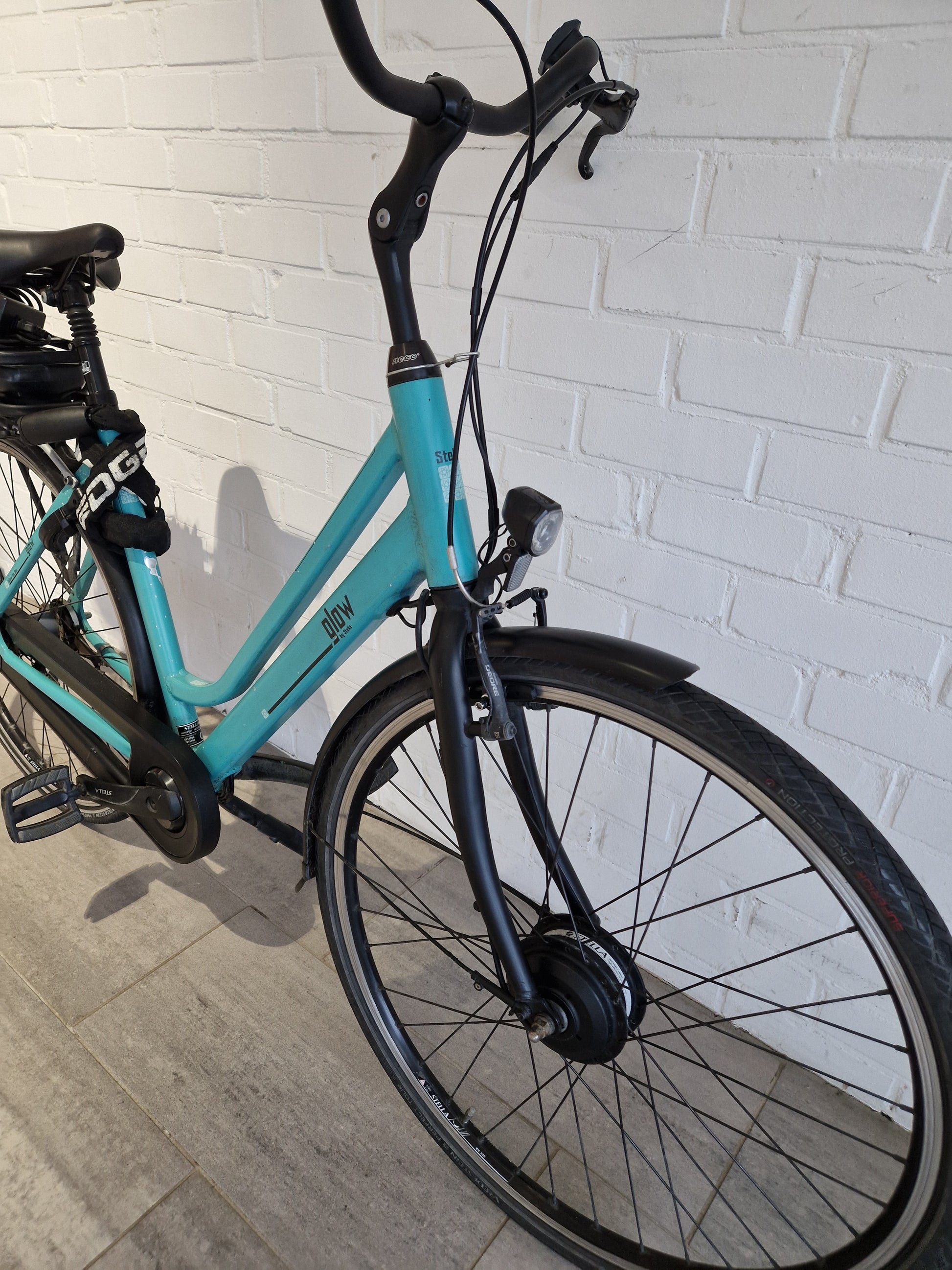 Stella elektrische fiets. Al onze tweedehands fietsen hebben een complete onderhoudsbeurt gehad in onze werkplaats. (Er zit een klein beetje lakschade op het frame, vandaar de scherpe prijs) Verder helemaal in orde!